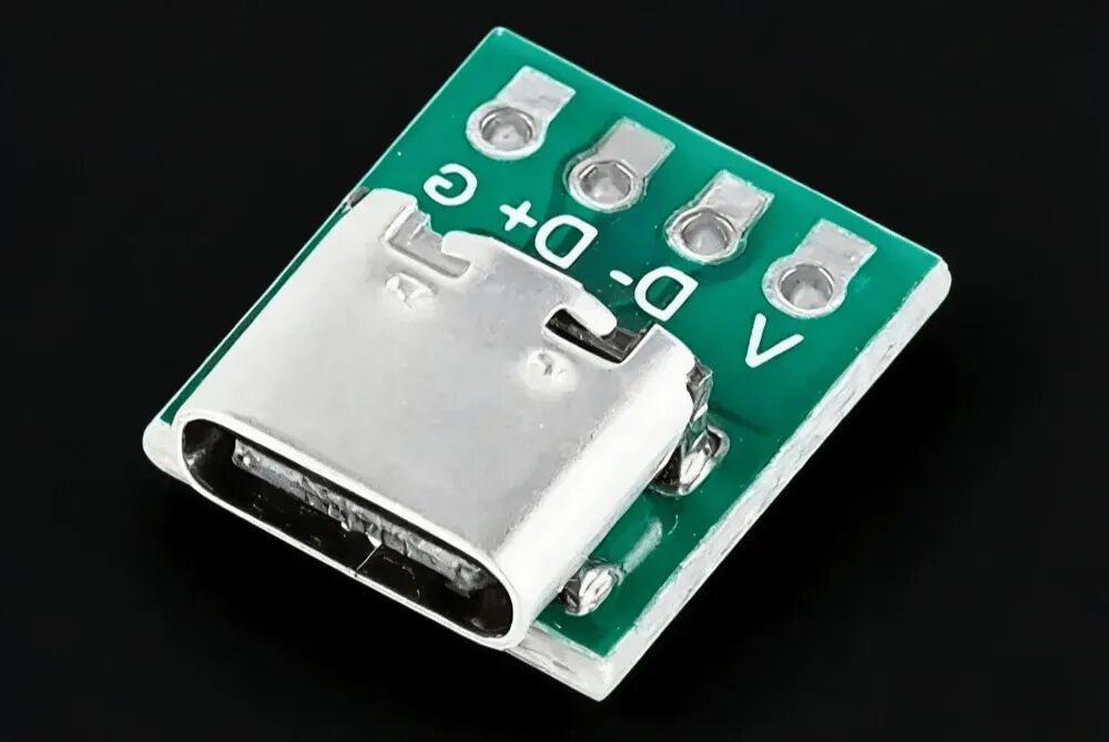例如上图这个只有 4 个针脚的 Type-C 母座,它提供 D+ / D- 用于 USB 2.0 低速数据传输和 VBUS、GND 供电,但没有对应的 CC 引脚,所以使用了这个母座的设备是无法用 C to C 线充电的。