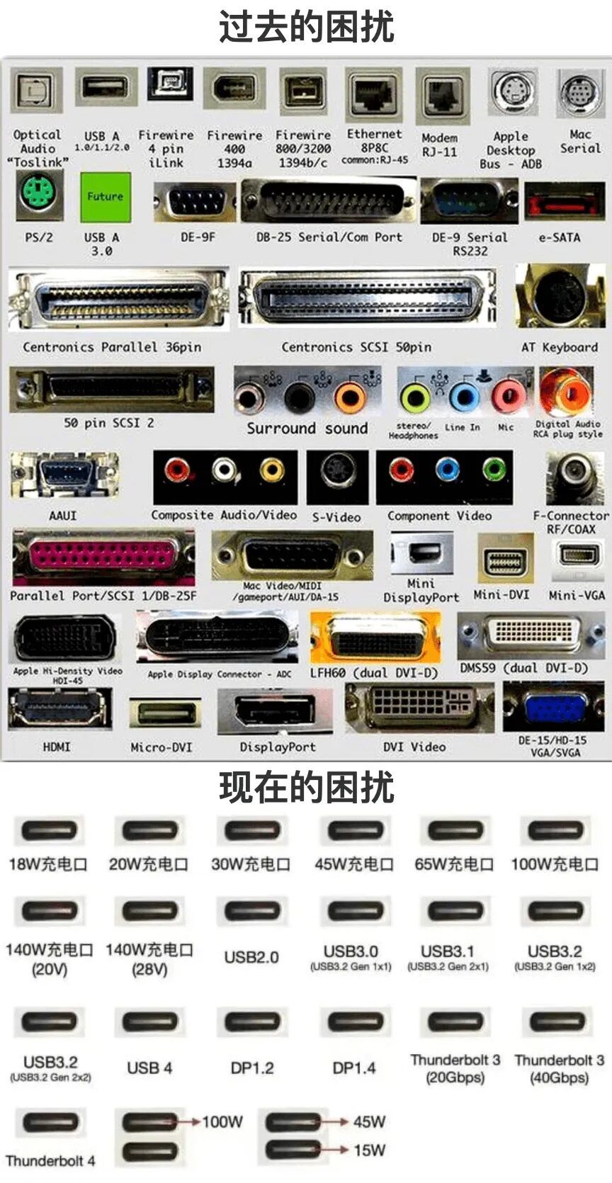我的问题解决了,那 Type-C 的呢?它看起来是有不少问题:落地实现不统一、协议标准不统一、体验也不统一……但这些似乎也只是表象。真正的问题在于,Type-C 用一个统一的接口形态,掩盖了背后复杂且分裂的实现与协议。
