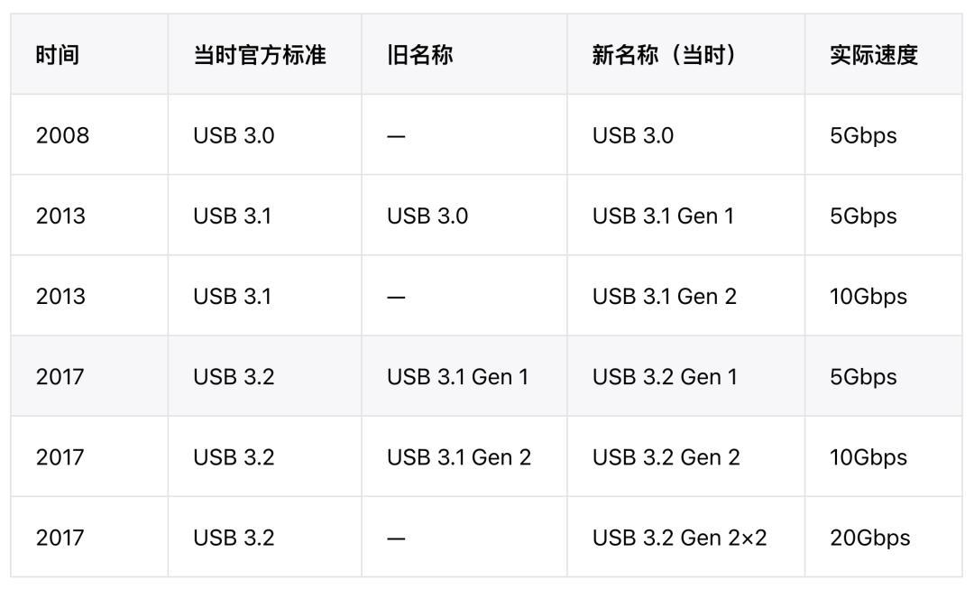 除了设备商的各种阉割、魔改让硬件规格和协议上不统一,USB-IF 在规范命名上的多次调整也进一步增加了用户的理解成本: